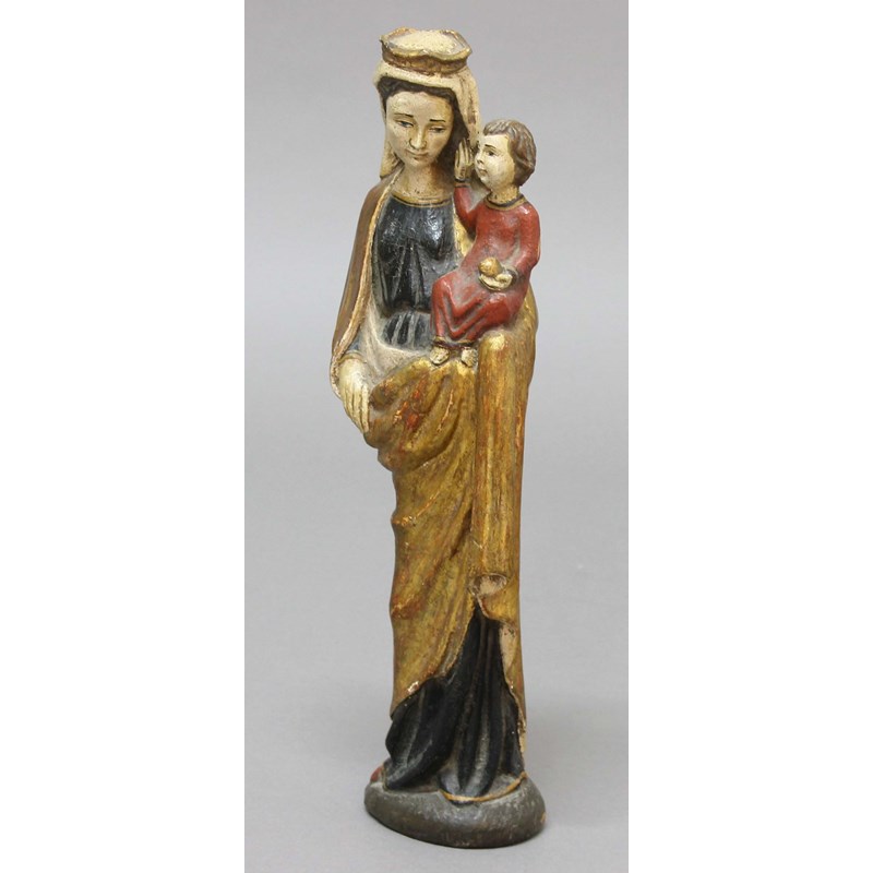 CARVED, PAINTED AND GILT MADONNA AND CHILD, 17th or 18th century, modelled standing, height 39cm