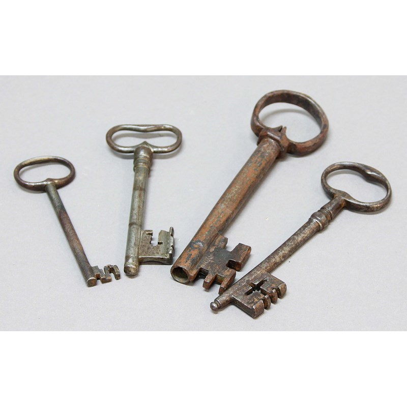 GROUP OF SIX IRON KEYS, probably 17th century, lengths 10.5cm to 16cm (6)