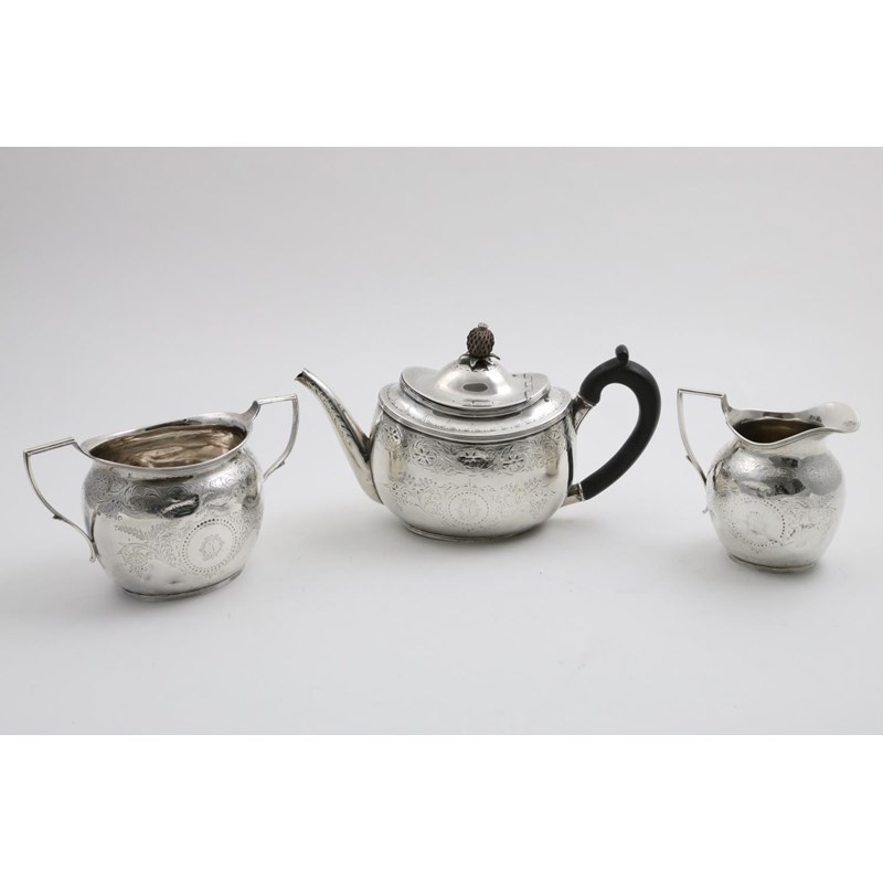 A LATE VICTORIAN ENGRAVED THREE-PIECE TEA SET