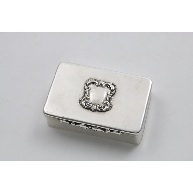 with an applied scroll thumbpiece, and an applied cartouche on the cover, the base with a presentation inscription "The Revd. Henry Chaytor B.A.....Chapel of Croxdale... AD1837", gilt interior, by C. Rawlings and W. Summers, London 1836; 3.35" (8.5 cms) long; 4.6 oz