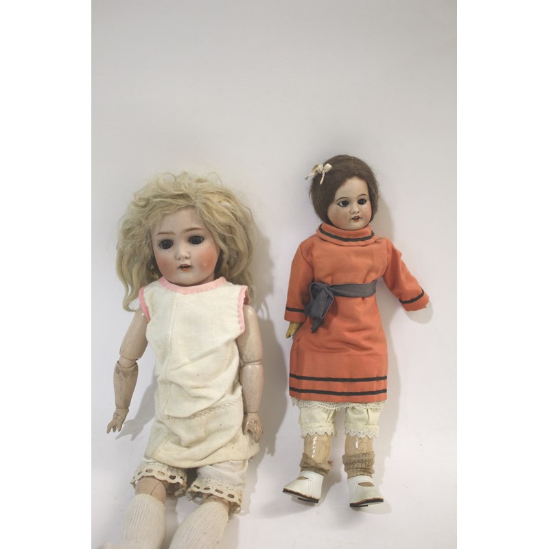 a SFBJ 60 doll with weighted brown eyes and open mouth. Also with an Alt Beck & Gottschalck bisque head doll (1362 Sweet Nell), with weighted brown eyes, open mouth and pierced ears. Alt Beck 18ins (46cms) high. (2)