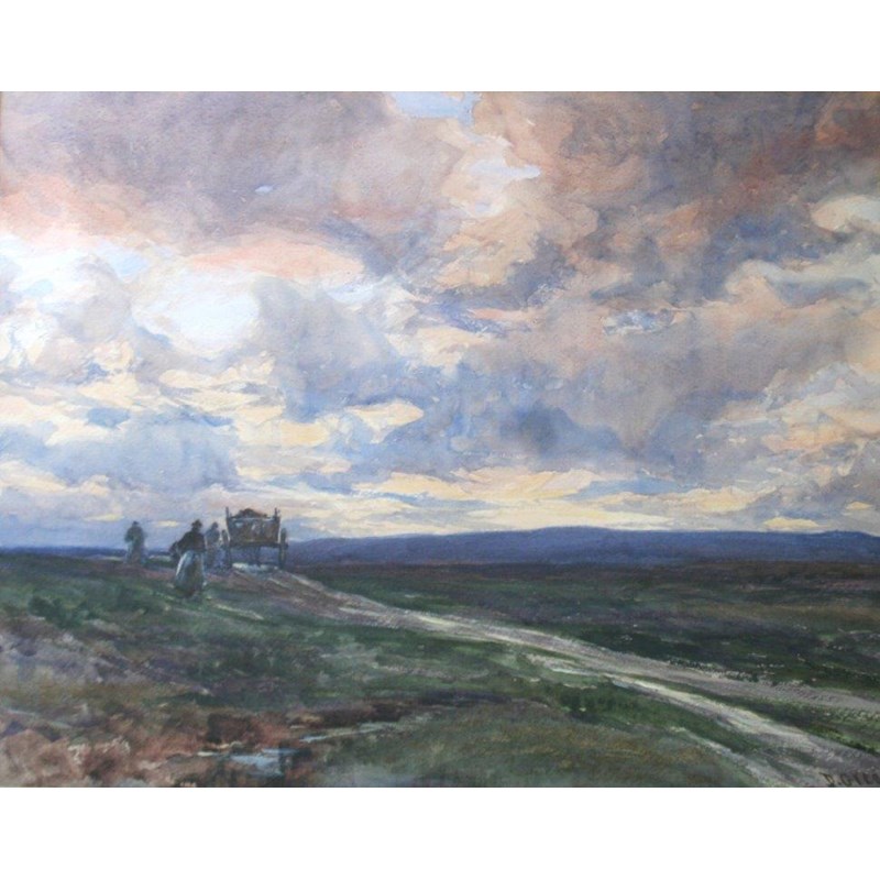 DAVID GOULD GREEN (1854-1918) HOMEWARDS ACROSS THE MOOR, EVENTIDE Signed, watercolour 40 x 51cm.