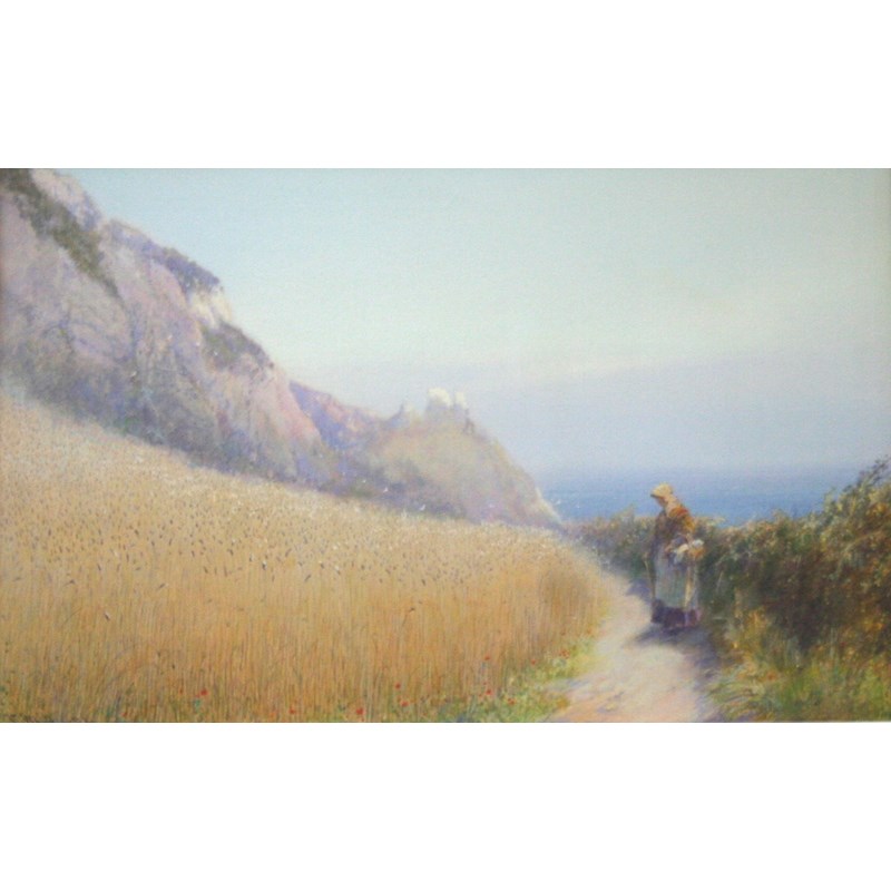 JOHN WHITE (1851-1933) A CORNFIELD BY THE SEA, BRANSCOMBE PLATS Signed, watercolour and bodycolour 17.5 x 27cm. Provenance: London, Christopher Wood, from whom purchased March 30th 1993; thence by descent