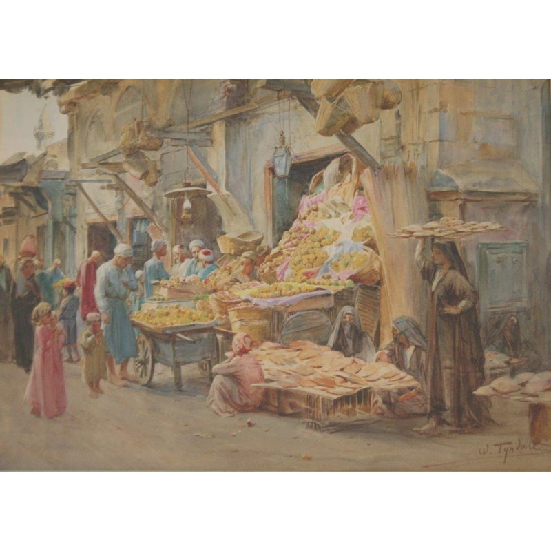 ‡WALTER FREDERICK ROOFE TYNDALE (1856-1943) AN ARAB MARKET Signed, indistinctly inscribed on the backboard 25 x 35cm.
