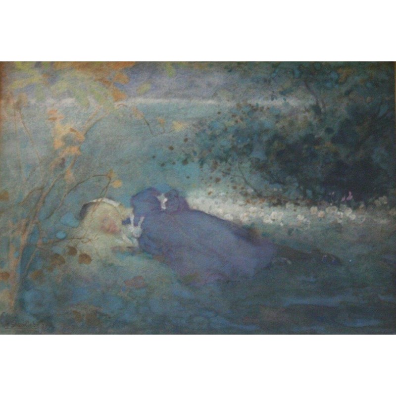 WILLIAM SHACKLETON (1872-1933) GIRL RESTING IN A WOODLAND CLEARING Signed and dated 1894, watercolour 15.5 x 22cm.