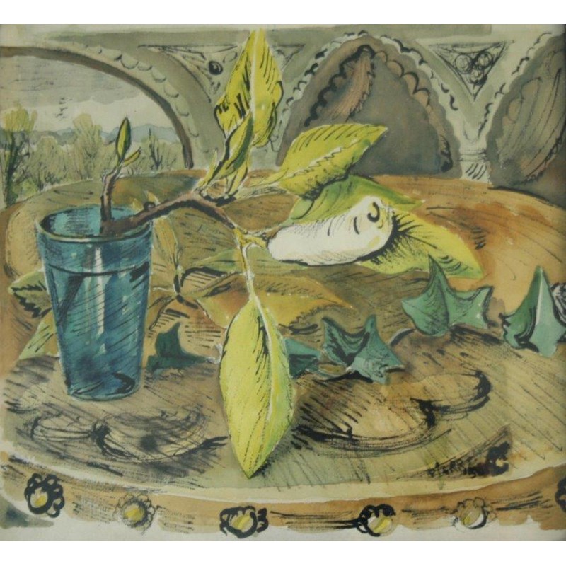‡PETER SAMUELSON (1912-1996) MAGNOLIA CUTTING IN A GLASS Signed PIERRE and indistinctly dated, watercolour with brush and ink 24 x 25.5cm.