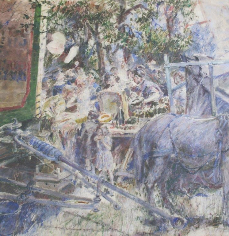 ‡CLAUDE BENDALL (1891-1970) FETE Signed and dated 1946, gouache and pencil 58.5 x 58.5cm. Exhibited: London, The Royal Academy, 1946, no.787 Provenance: London, Abbott & Holder Ltd, from whom purchased 2001