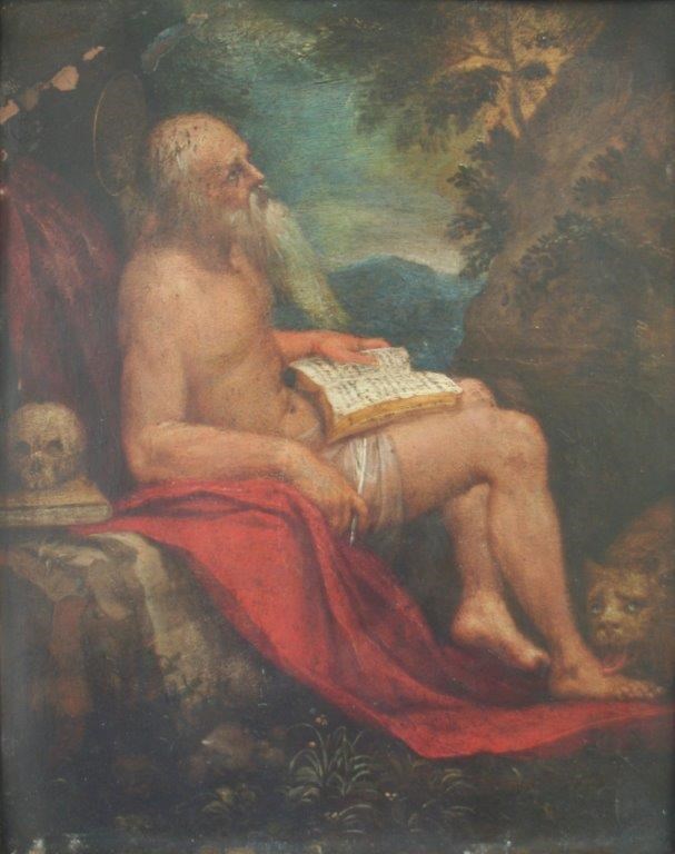 CIRCLE OF FILIPPO LAURI (1623-1694) ST JEROME IN THE WILDERNESS Oil on copper 24.5 x 19cm.