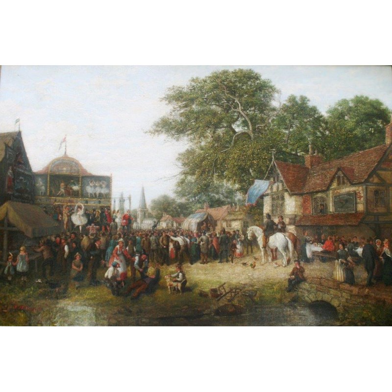 JOHN HOLLAND Jnr (1830-1886) A COUNTRY FAIR Signed, oil on canvas 49.5 x 74cm.