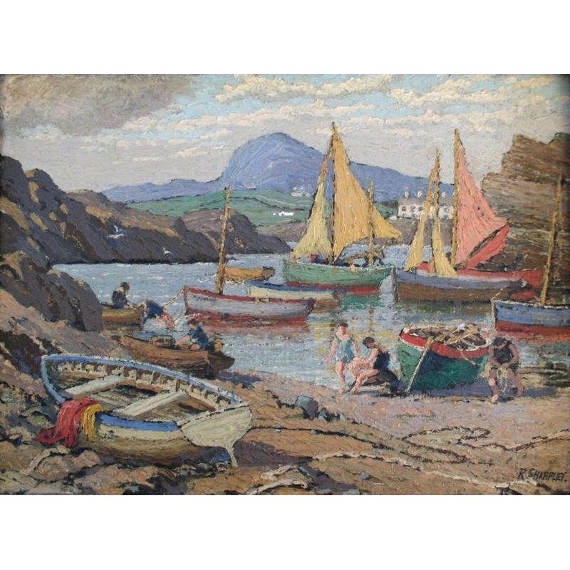 ‡REGINALD SHARPLEY (1879-1947) TREARDDUR BAY Signed, also signed and inscribed with title on an NEAC label verso, oil on canvas board 29 x 39cm.