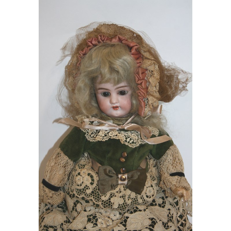 BISQUE HEAD DOLL - DEP with fixed brown eyes, open mouth and pierced ears. Marked, Dep, Germany. 15ins (38cms) high
