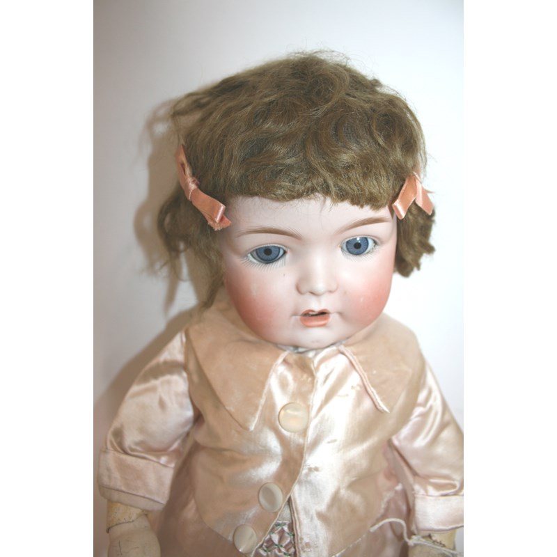 HEUBACH BISQUE HEAD DOLL with weighted blue eyes, and open mouth with tongue. Marked, Heubach, 12, Germany. 23ins (58cms) high