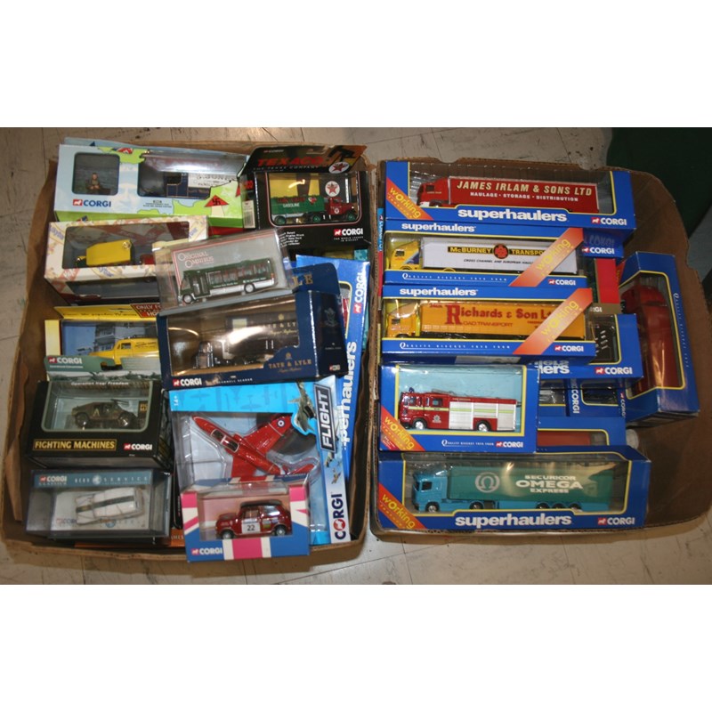 a collection of Corgi boxed die cast models, including Superhaulers (Mc Burney Transport, Richards & Son Transport, Scania Race Transporter etc). Also with Dads Army, BAE Hawk, Austin Cooper, Texaco Petrol Tanker, Military Police, and many more.