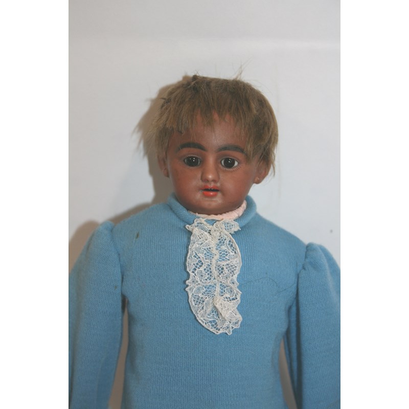 UNUSUAL SIMON & HALBIG DOLL a small brown doll with fixed brown eyes, open mouth and pierced ears. Marked, S & H, 1010, Dep. 14ins (36cms) high