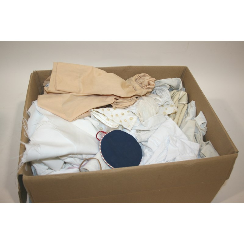 QTY OF DOLLS CLOTHES a variety of items including dolls clothes, christening gowns, material etc.