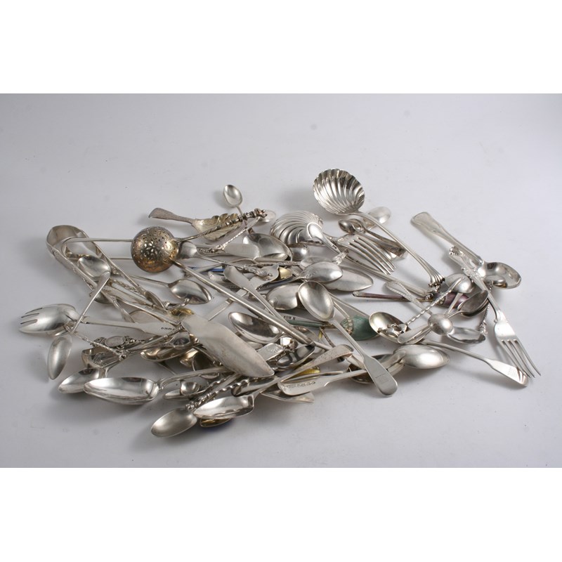Onslow pattern by Michael Keating, Dublin 1769 and a quantity of assorted small flatware; the ladles 6.75" (17.2 cms) long; 36 oz (lot)
