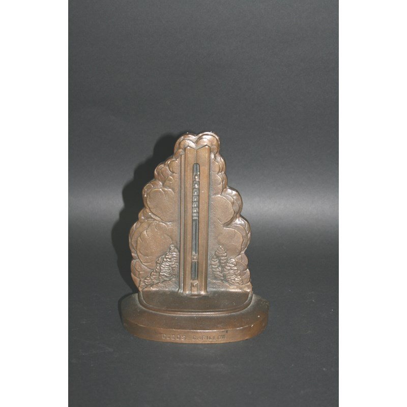 a bronze sculpture of Deeds Carillon (Dayton, Ohio) Bell Tower. Made in the Art Deco style, and with the name on the front. Unsigned, 7 1/2ins (19cms) high