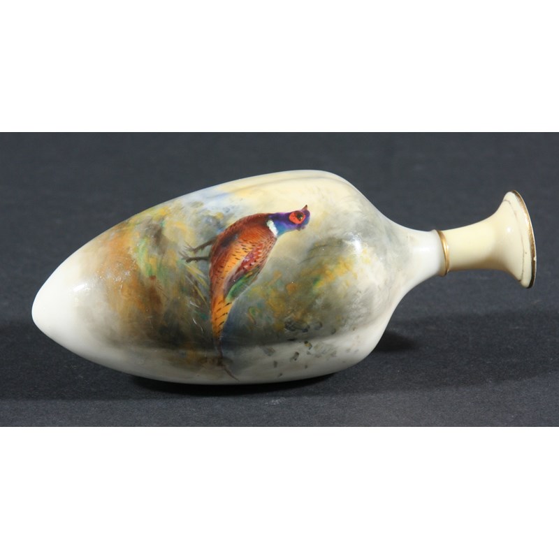 ROYAL WORCESTER VASE, by Jas Stinton, of amphora form, painted with a cock pheasant, height 12cm
