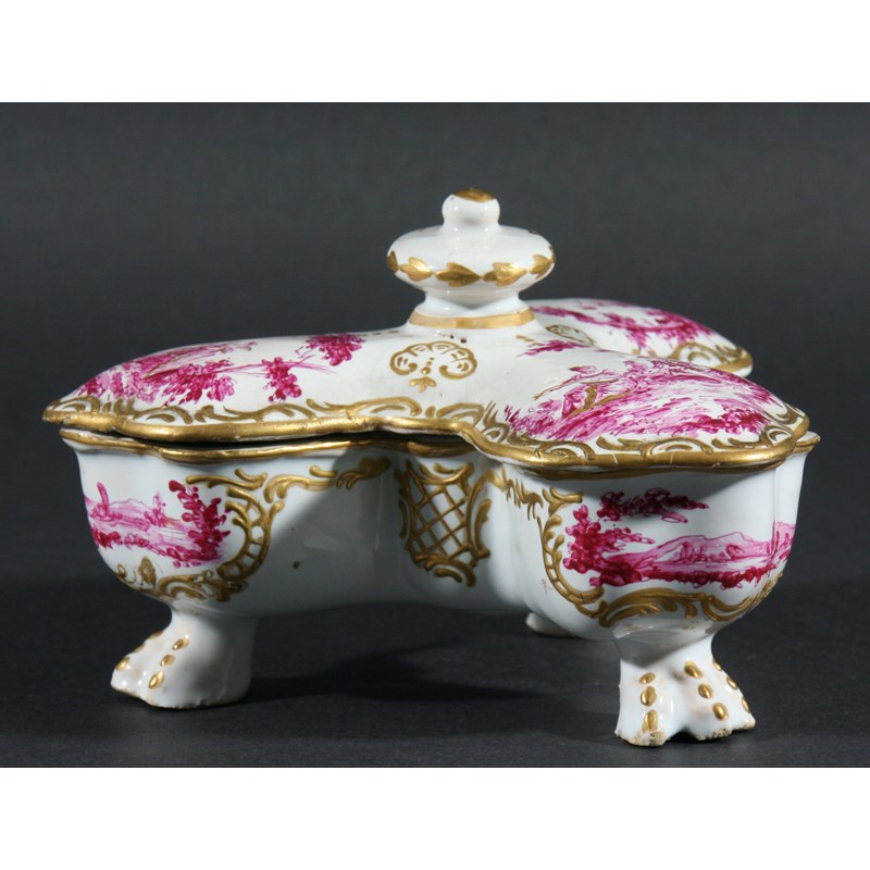 FRENCH FAIENCE TREFOIL SALT AND COVER.