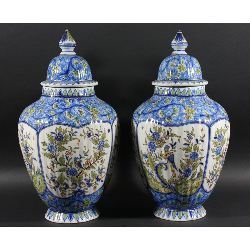 PAIR OF DUTCH DELFT VASES AND COVERS,