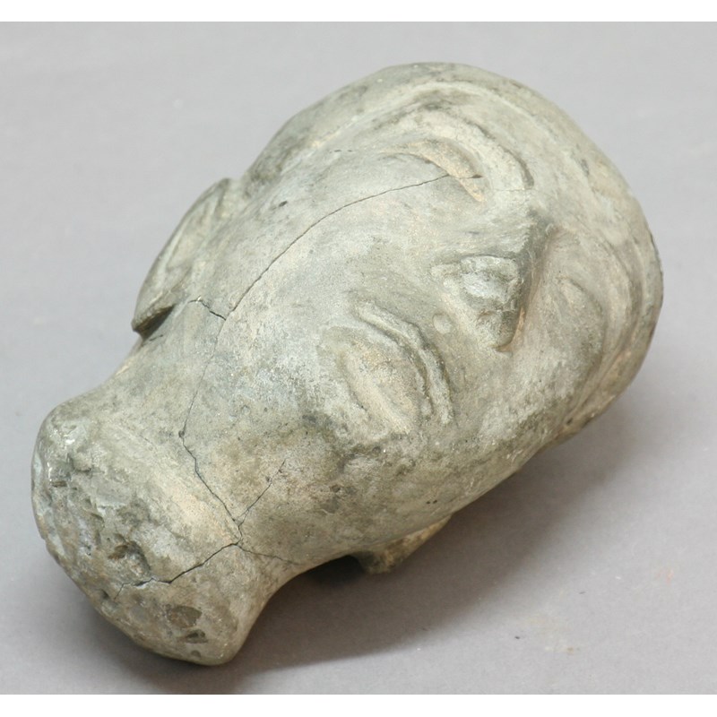GREY SCHIST HEAD OF BUDDHA, possibly pre-10th century, with a small top knot, height 18cm