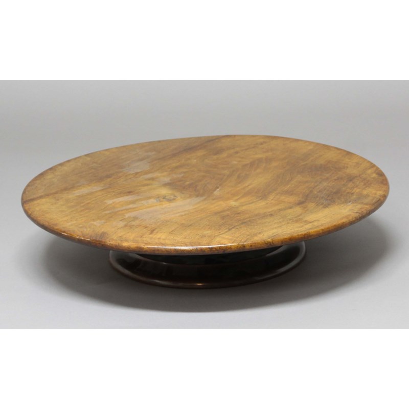 MAHOGANY LAZY SUSAN, probably late 19th century, on a turned foot, height 12cm, diameter 61cm