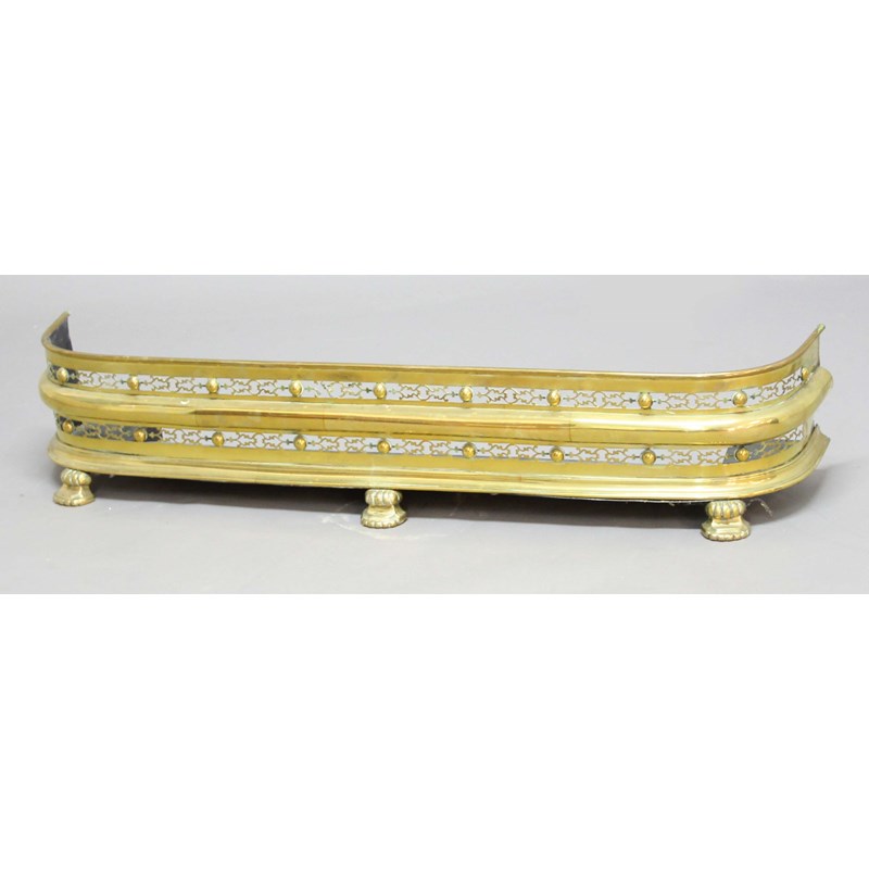 REGENCY BRASS FENDER, with pierced strapwork and scrolling feet, width 112cm