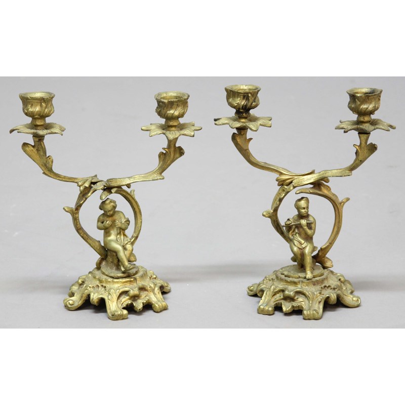 PAIR OF GILT METAL FIGURAL CANDELABRA, modelled as a pair of musicians beneath foliate, scrolling branches, height 23cm (2)