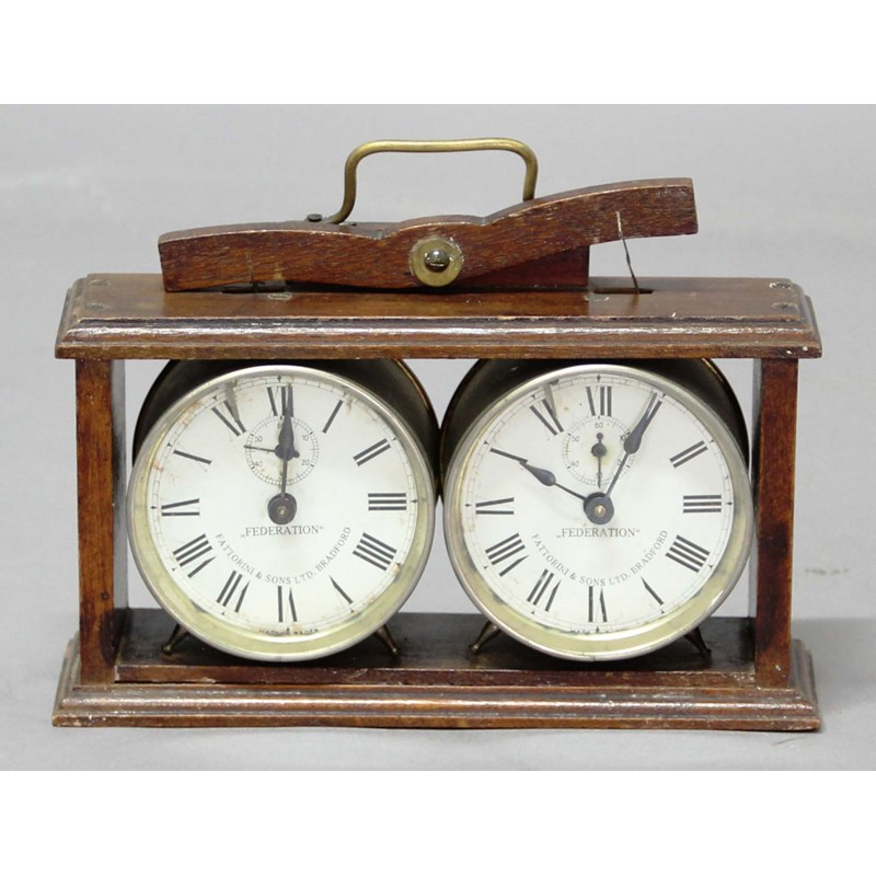 FEDERATION CHESS CLOCK, by Fattorini and Sons, Bradford, in a mahogany case, width 25.5cm