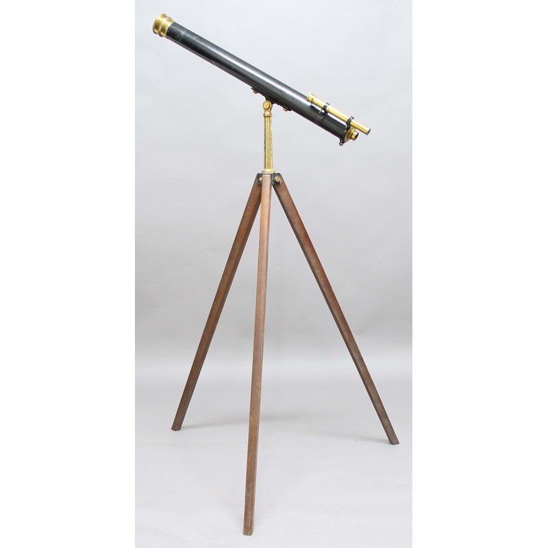 by Broadhurst, Clarkson and co, London, 3", with sighting scope, two eye pieces, sun shade and mahogany and brass tripod, with original wooden case, length of telescope 110cm