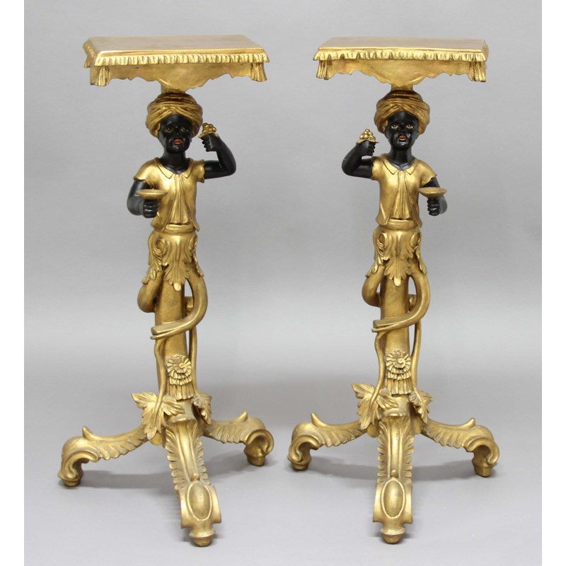PAIR OF GILTWOOD AND PAINTED BLACKAMOOR STANDS,
