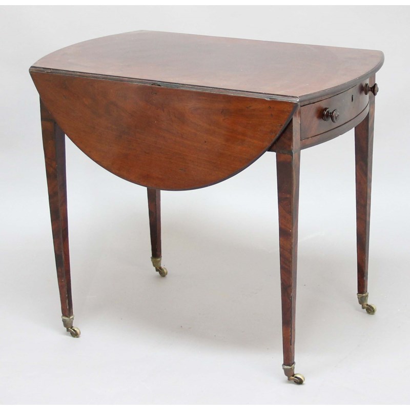 REGENCY MAHOGANY PEMBROKE TABLE, the oval top above one true and one false drawer and tapering square section legs, height 70cm, width open 98cm, depth 80cm