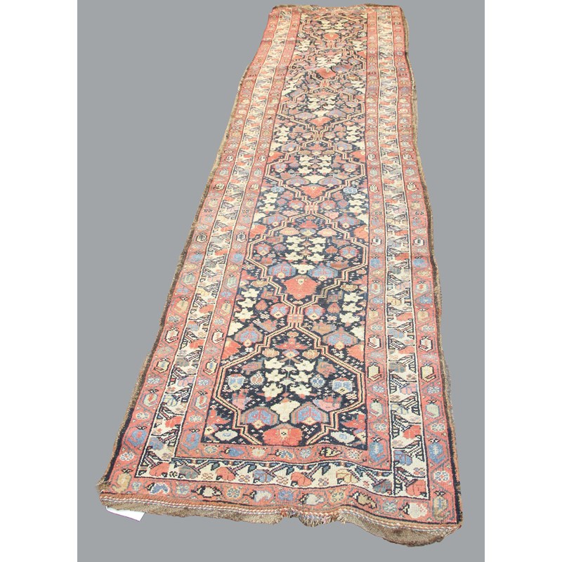 KURDISH RUNNER West Iran, the indigo lattice field of gol henna design enclosed by narrow borders, 385cm x 90cm