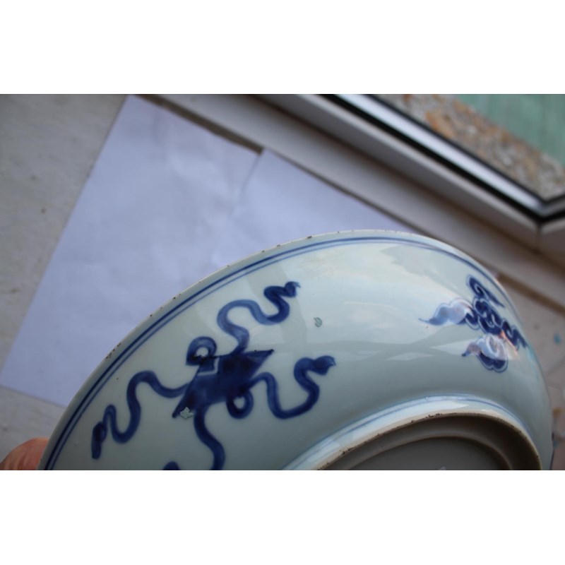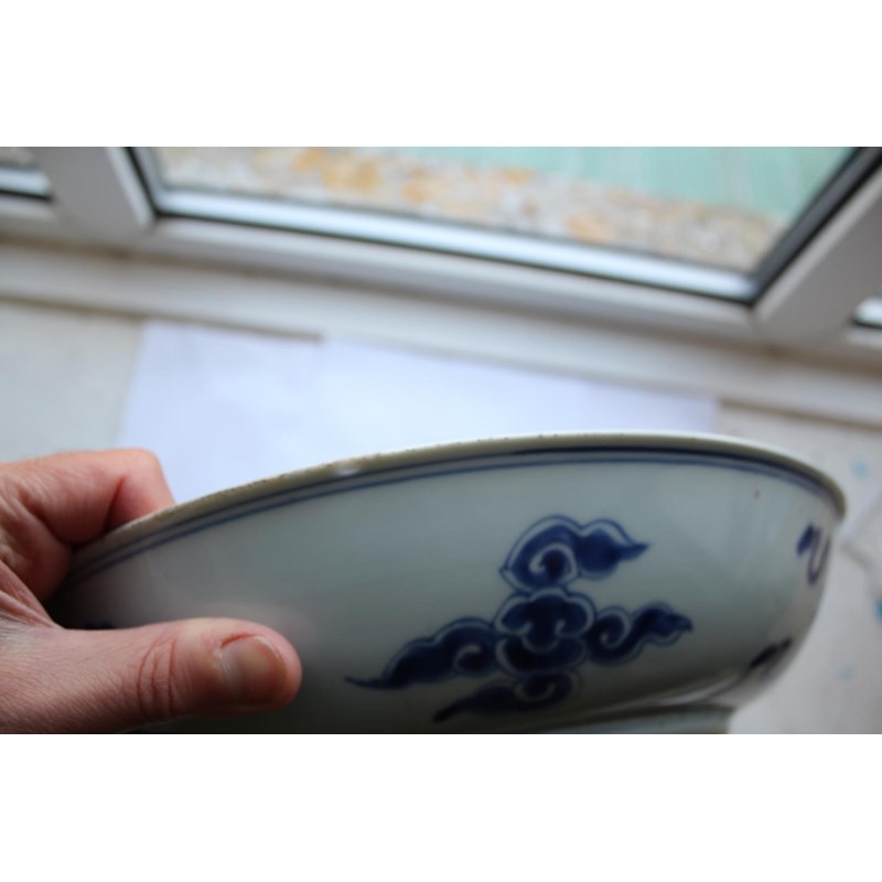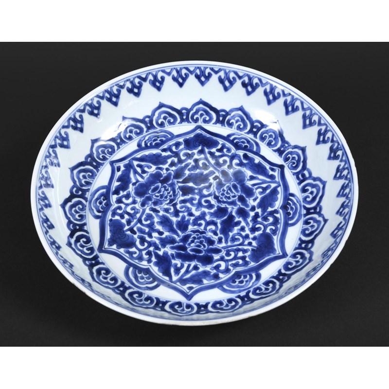 CHINESE BLUE & WHITE CIRCULAR PORCELAIN DISH - KANGXI