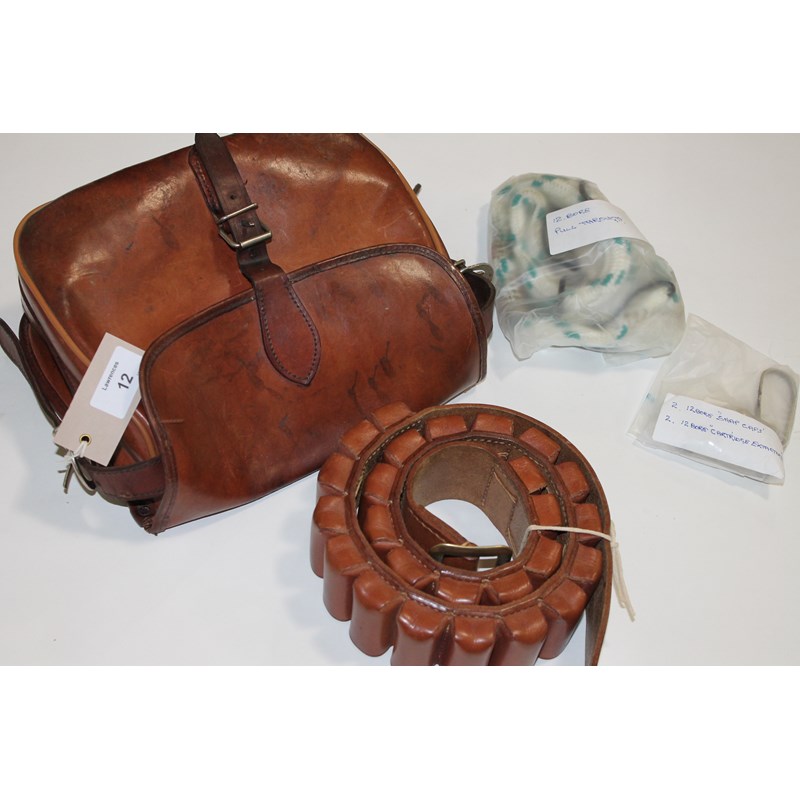 SHOOTING ACCESSORIES. Leather Cartridge Bag and Cartridge Belt, Snap Caps, Cleaning equipment, etc