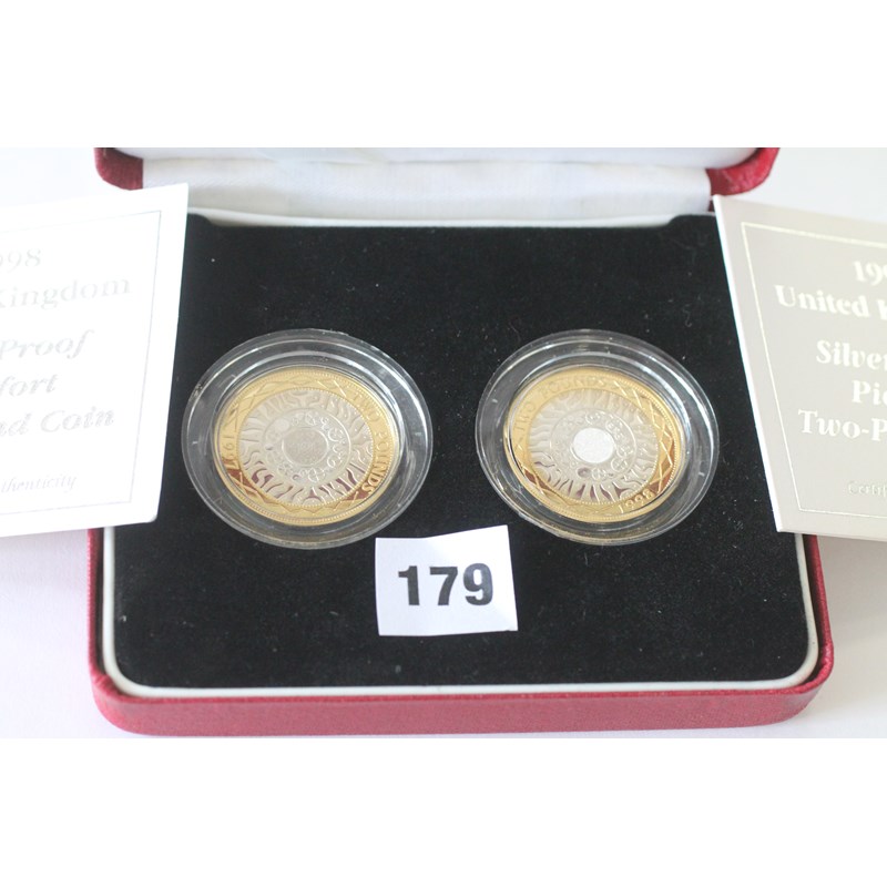 A cased 1994 Piedfort Two Pound piece with Certificate dated 1994. Two cased Two Pound Piedfort Pieces with Certificates, dated 1997 & 1998. (3 in total).
