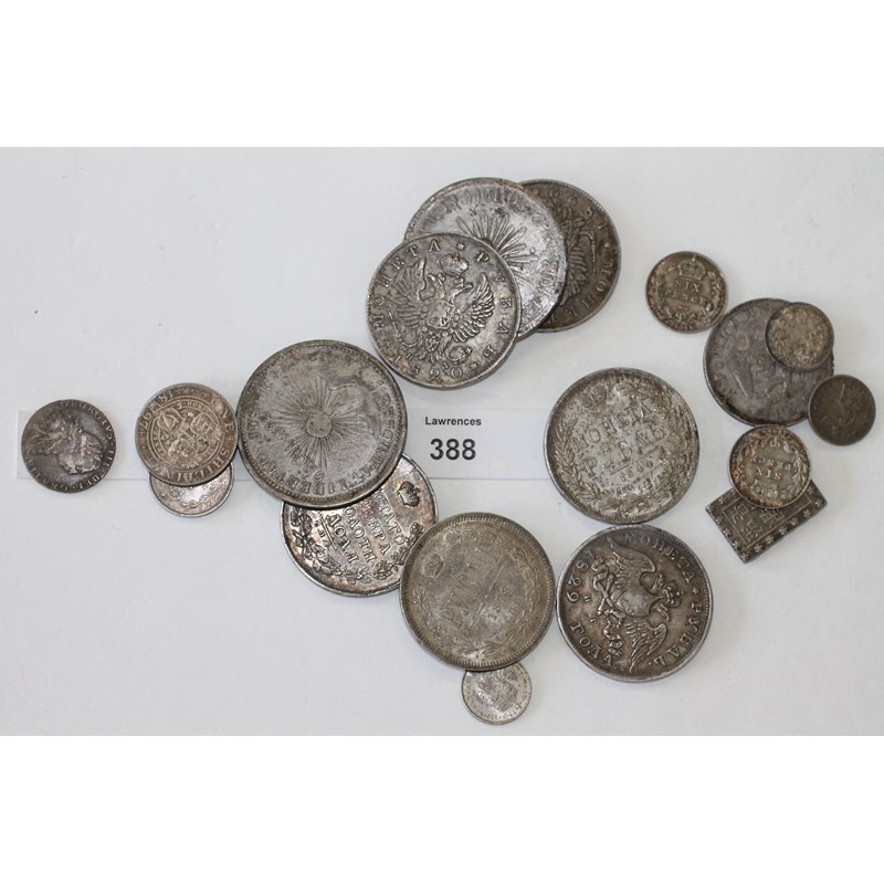 SILVER 19thC COINAGE etc. Russian Silver Roubles dated 1820/1822/1829 x 2/1844, further Mexican 1914 Pesos and other silver coinage.