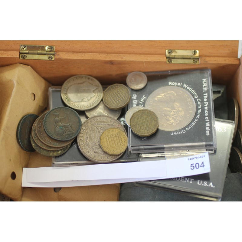 CROWNS US SILVER DOLLAR etc. Five Victorian Crown pieces, dated 1887-1890 x 2, 1895 & 1897., US Morgan Dollar dated 1883, UNC Kennedy Half Dollar 1967. Other modern Crowns etc