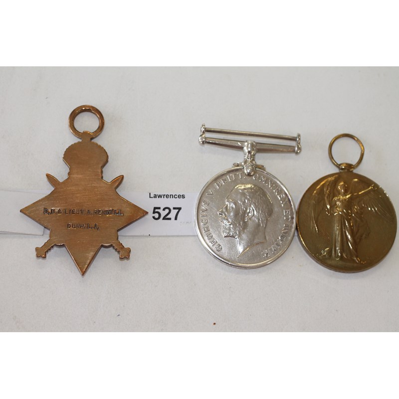 A 1914/15 Star named to Q M 2/Lt A Rendell DLI. British War & VIctory Medals named to Q M & Capt A Rendell.