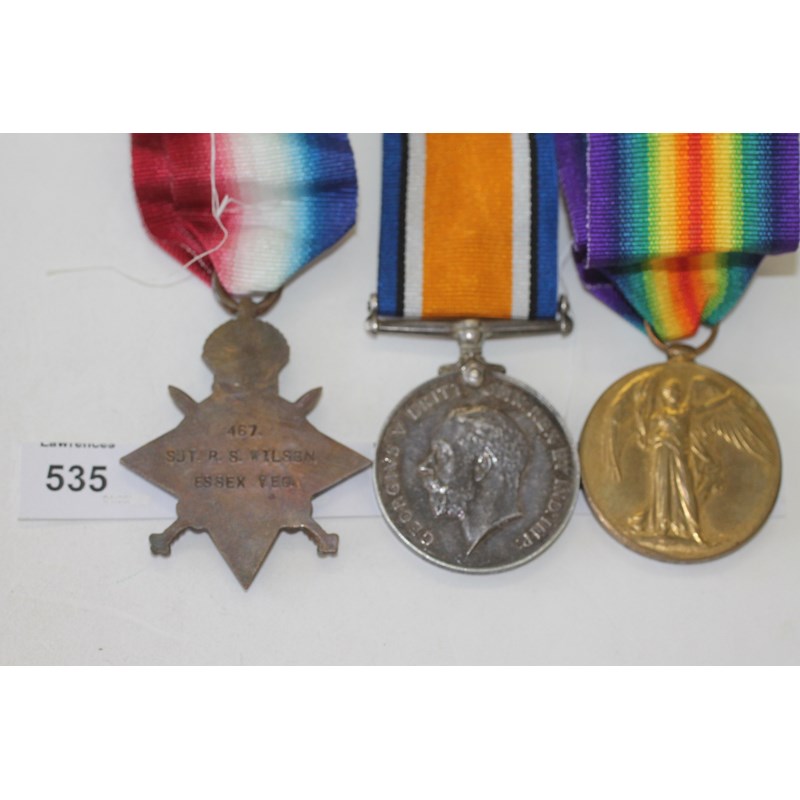 A 1914/15 Star named to 467 Sjt R S Wilson Essex Yeo. British War & VIctory Medals named to Capt R S Wilson.