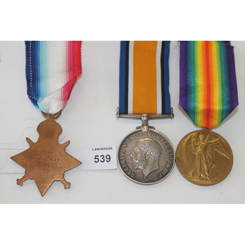 A 1914/15 Star named to 2454 Pte P Powley A. Cyclist Corps. British War & Victory Medals named to 2454 Cpl P Powley A. Cyc.Corps.