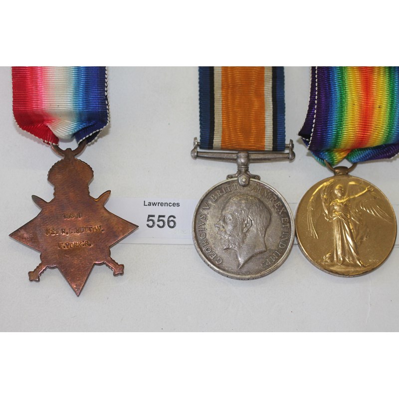 A 1914/15 Star, British War & Victory Medals named to 10581 Pte H L Sutton W Yorks R.
