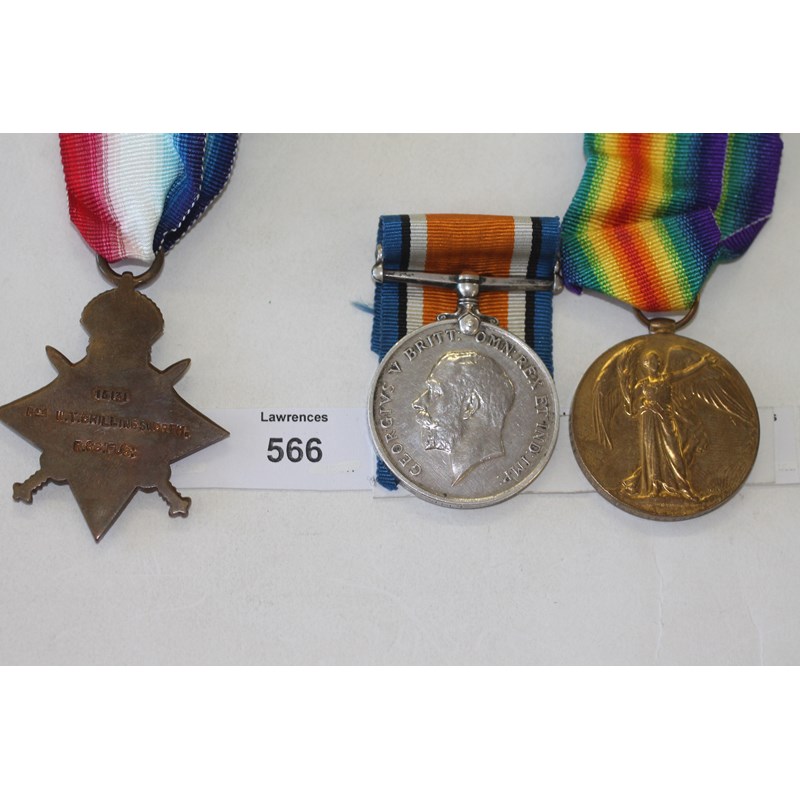 A 1914/15 Star, British War & VIctory Medals named to 15131 Pte W T Chillingsworth. R Sc.Fus.