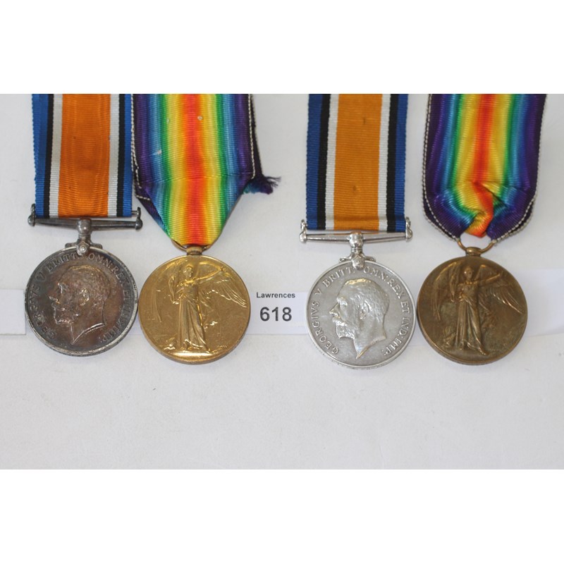 British War & VIctory Medals named to 1. 28806 Pte A Brown 14-Hrs. (Arthur Brown) also served in the Labour Corps under number 669252. 2. 22352 Pte W Parrott 15-Hrs. (William) Parrott served in France with his Regiment from the 23rd May 1915. Later under number 50703 with the Machine Gun Corps Cavalry. Class Z Reserve 1919.