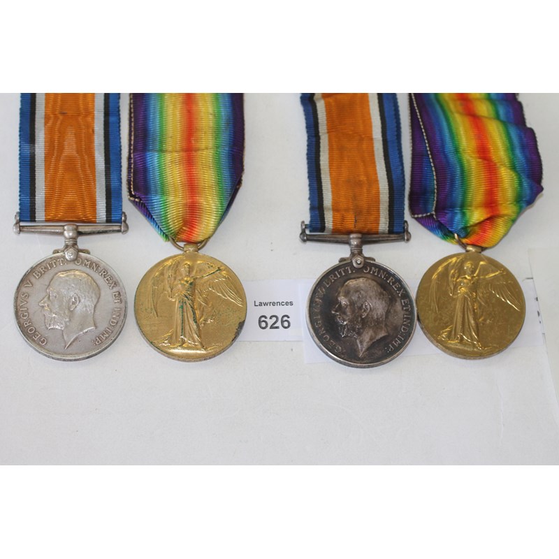 TWO GUARDS MACHINE GUN REGIMENT PAIRS. British war & Victory Medals named to 1. 5000 W O Cl 11 A Learmouth Gds M.G.R. (Alexander Learmouth). 2. 2337 Pte I Green Gds.M.G.R. (Isaac Green) Guards Machine Gun Regiment.