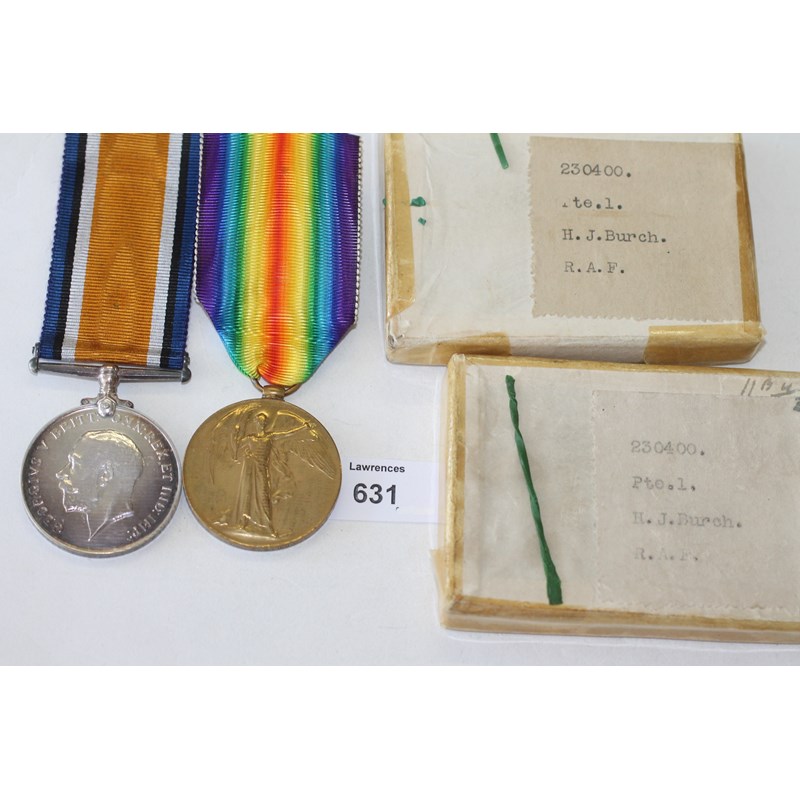 British War & Victory Medals named to 1. 106961 2 A M E G King RAF. 2. 230400 Pte 1. H. J. Burch R. A. F. (the latter in original boxes of issue.)