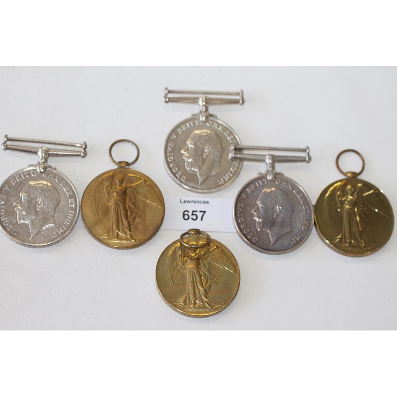 British War & Victory Medals named to 1. 26143 Pte A E Barlthrop R Lancs R. (Albert) 2. 33794 Pte R Crabb. R Fus. (Reginald). 3. 28957 Pte W B Cole. R Wark.R. (Walter). All three confirmed by MIC as pairs only issued.