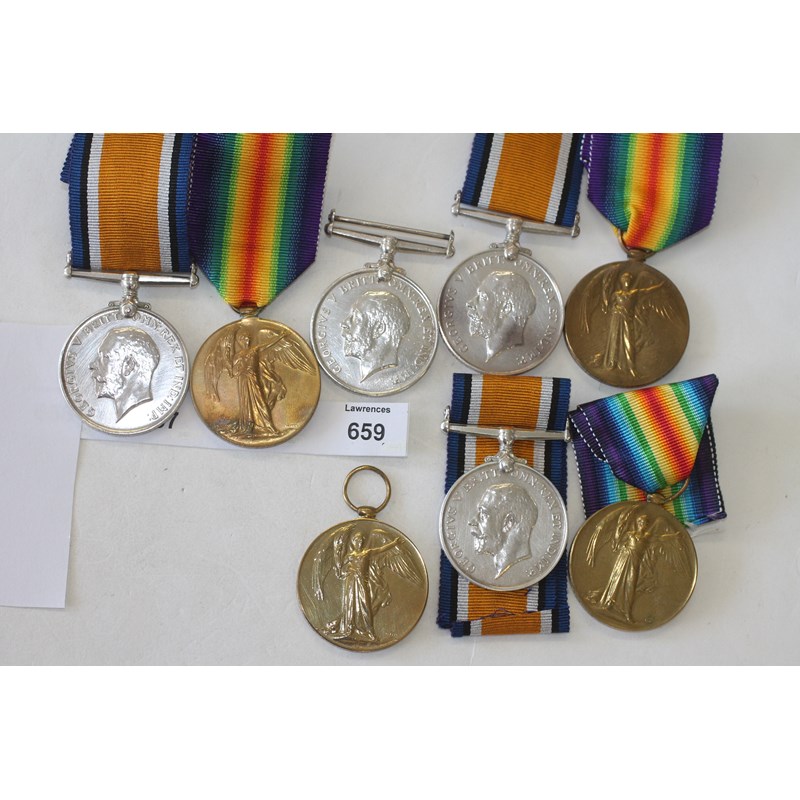 British War & Victory Medals named to 1. 7954 Pte W J Harrison E Yorks.R. 2. 44814 Pte D Newell Manch.R. 3. 11661 Pte W J Grey K.R.R.C. 4. 6339 Pte T Ladd Rif. Bgde.