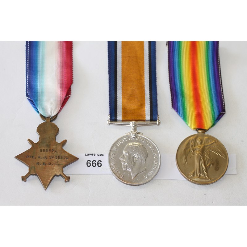 A 1914/15 Star, named to 66567 Pte W J Spiers R A M C. British War & Victory Medals named to 66567 Cpl W J Spiers R.A.M.C. (William J) served in France from 16th November 1915.