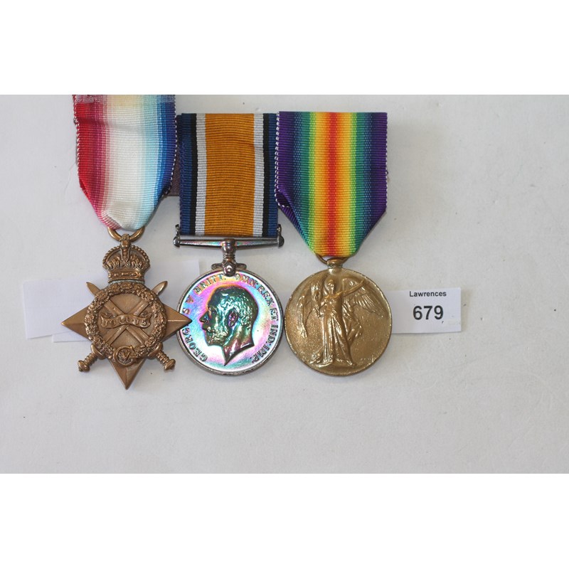 A 1914/15 Star, British War & Victory Medals, named to J D Lyle BRC & St J J.